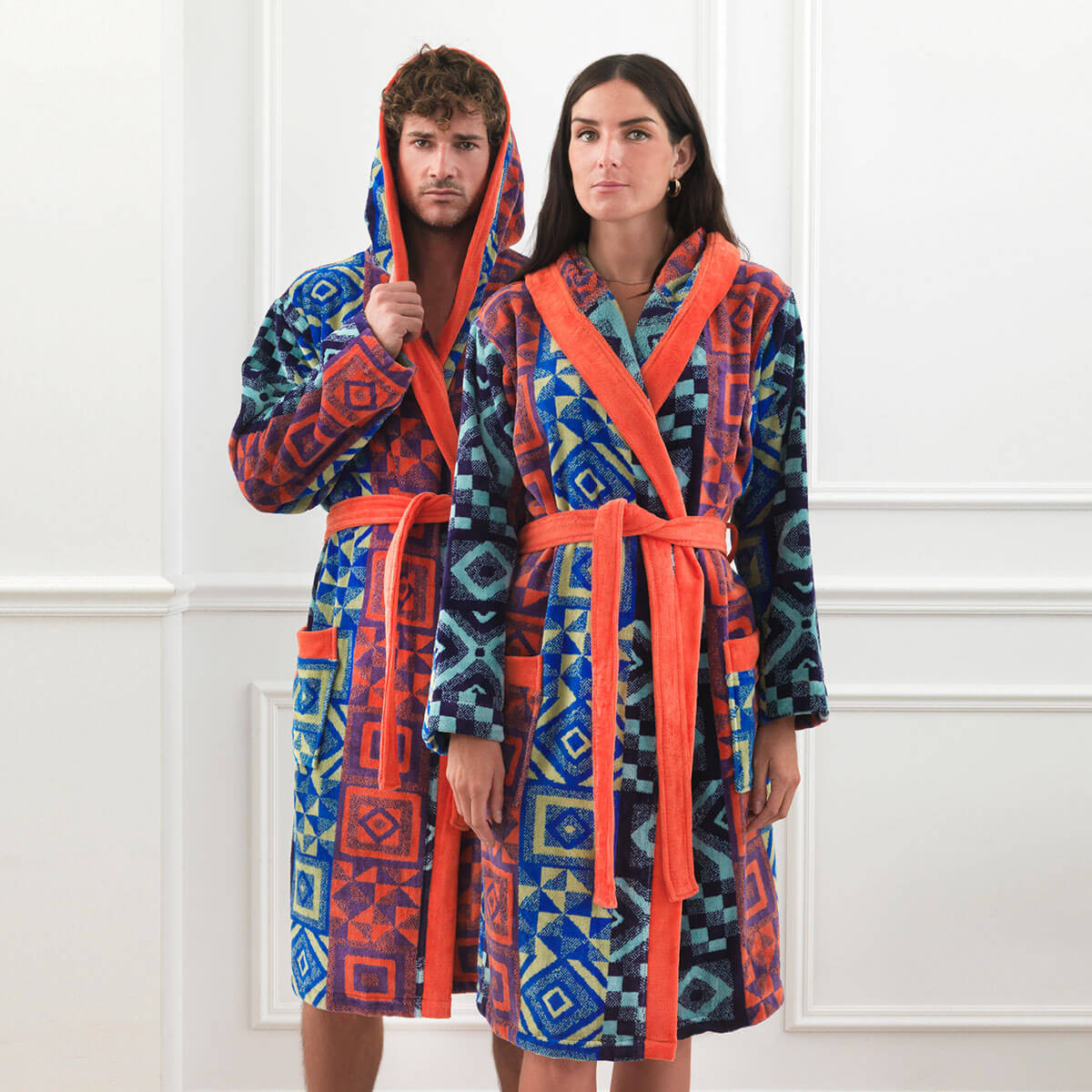 Albornoz unisex adulto con capucha. 100% Algodón jacquard. Tacto exterior aterciopelado.