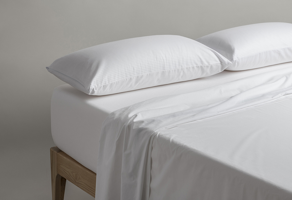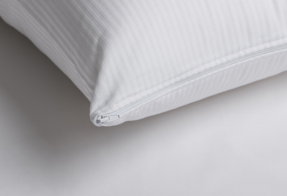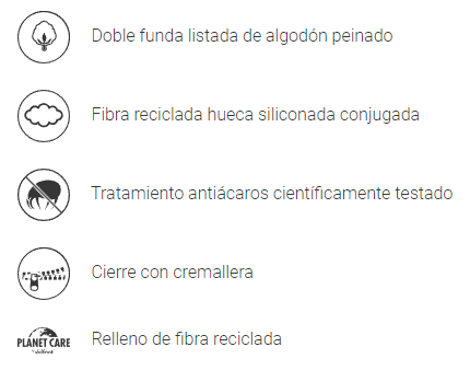 Una funda de 100% algodón peinado de 200 hilos con cremallera y una funda interior con tratamiento antiácaros.