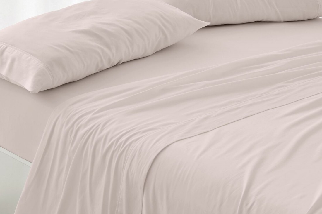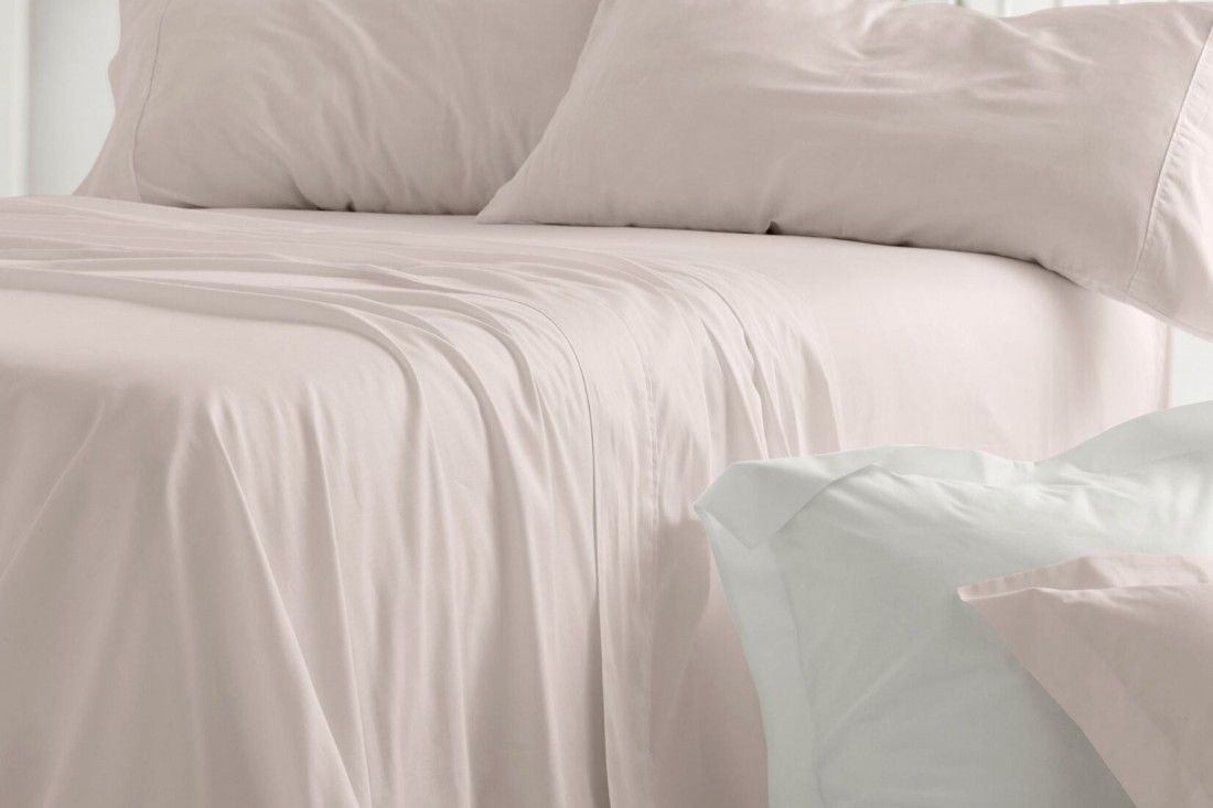 Una de las sábanas de gama extra en la colección de Burrito Blanco. En color rosa nude, este juego de sábanas se compone de una sábana encimera, una sábana bajera ajustable y una o dos fundas de almohada.