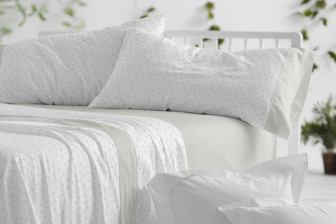 Un refinado estampado, estilo Liberty, en este juego de sábanas de franela de algodón premium, de Burrito Blanco. Flores en tonos laurel y café sobre un fondo blanco. El diseño evoca una conexión con la naturaleza a través de su patrón botánico sutil. El embozo de la sábana, la sábana bajera ajustable y las aplicaciones en las bocas de la almohada son de color laurel liso. Sábanas de franela de Burrito Blanco, las de toda la vida, para una ropa de cama confortable en invierno. La denominación Liberty, viene de Liberty & Co., la empresa que definió esta estética botánica.