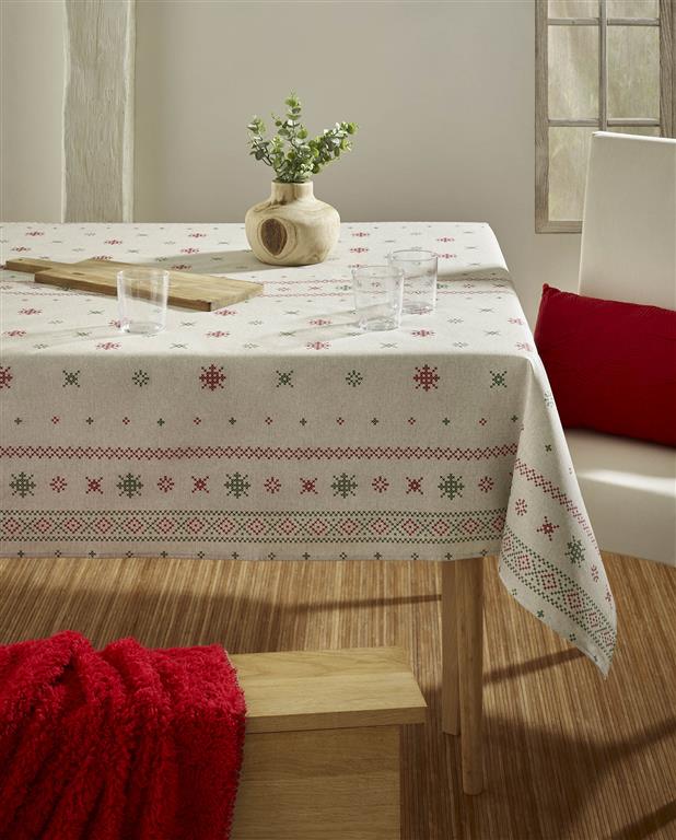 MANTEL ANTI-MANCHAS COPOS NAVIDAD 200X150