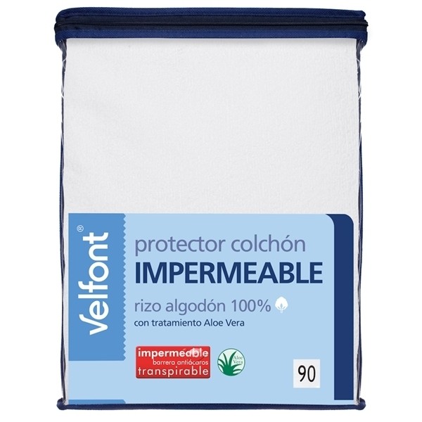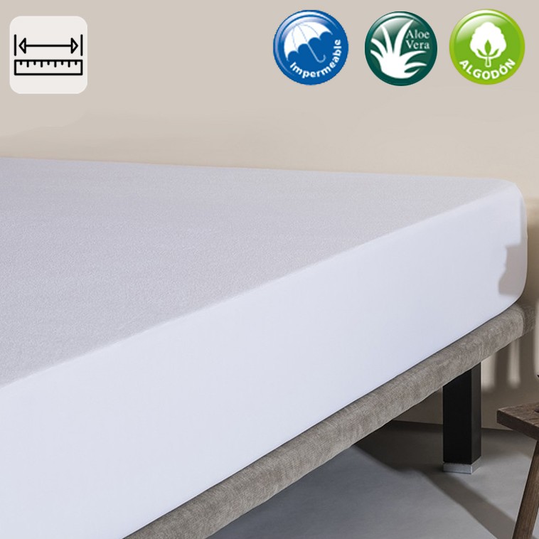 Protector de colchón Impermeable y Transpirable de rizo 100% algodón con tratamiento Aloe Vera.
