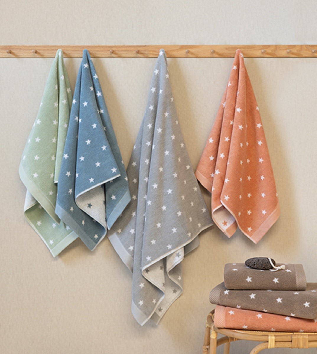 Toalla de rizo de 500 g/m2, algodón 100% estampado estrellas.